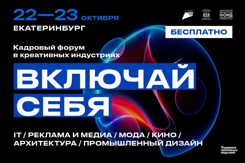 Кадровый форум в креативных индустриях «Включай себя» состоится в Екатеринбурге 22 и 23 октября 2025 года. Первый день мероприятия пройдёт в городском молодёжном кластере «Салют» (Толмачёва, 12), площадкой второго дня станет креативный кластер «Домна» (Вайнера, 16). Начало в 11:00.