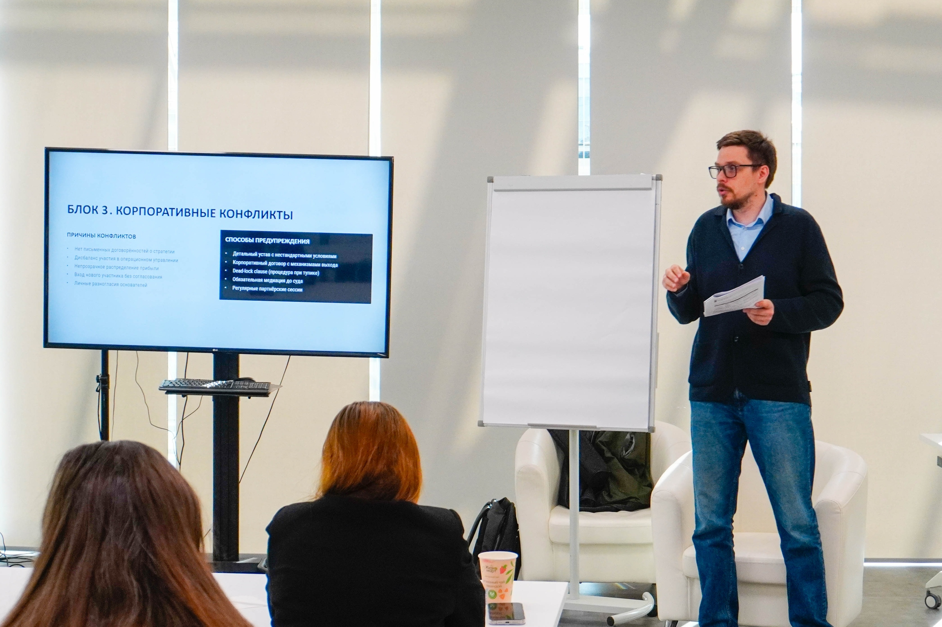 В ходе семинара были разобраны способы взаимодействия между участниками обществ и правильном оформлении этого взаимодействия. Особый акцент сделан на профилактике корпоративных конфликтов: спикер подробно остановился на методах их предупреждения, чтобы владельцы бизнеса могли выявлять угрозы на ранних стадиях.