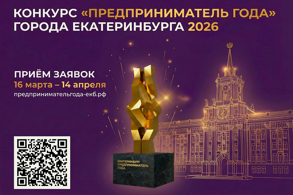 По 14 апреля 2026 года осуществляется прием заявок на ежегодный конкурс «Предприниматель года города Екатеринбурга»!