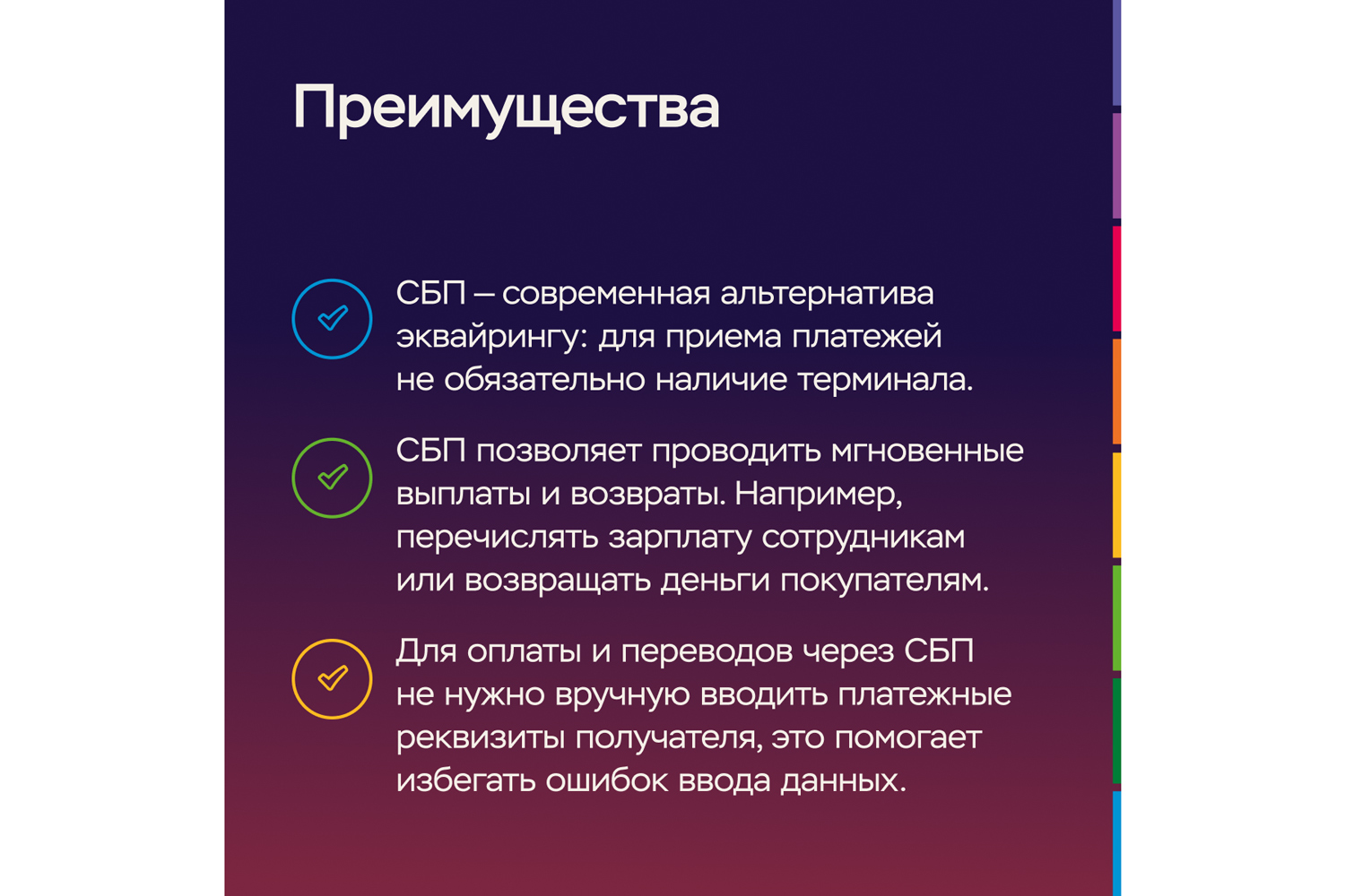 Почему бизнесу стоит начать принимать безналичную оплату через СБП, и в чем ее преимущество перед другими сервисами оплаты, читайте в карточках!